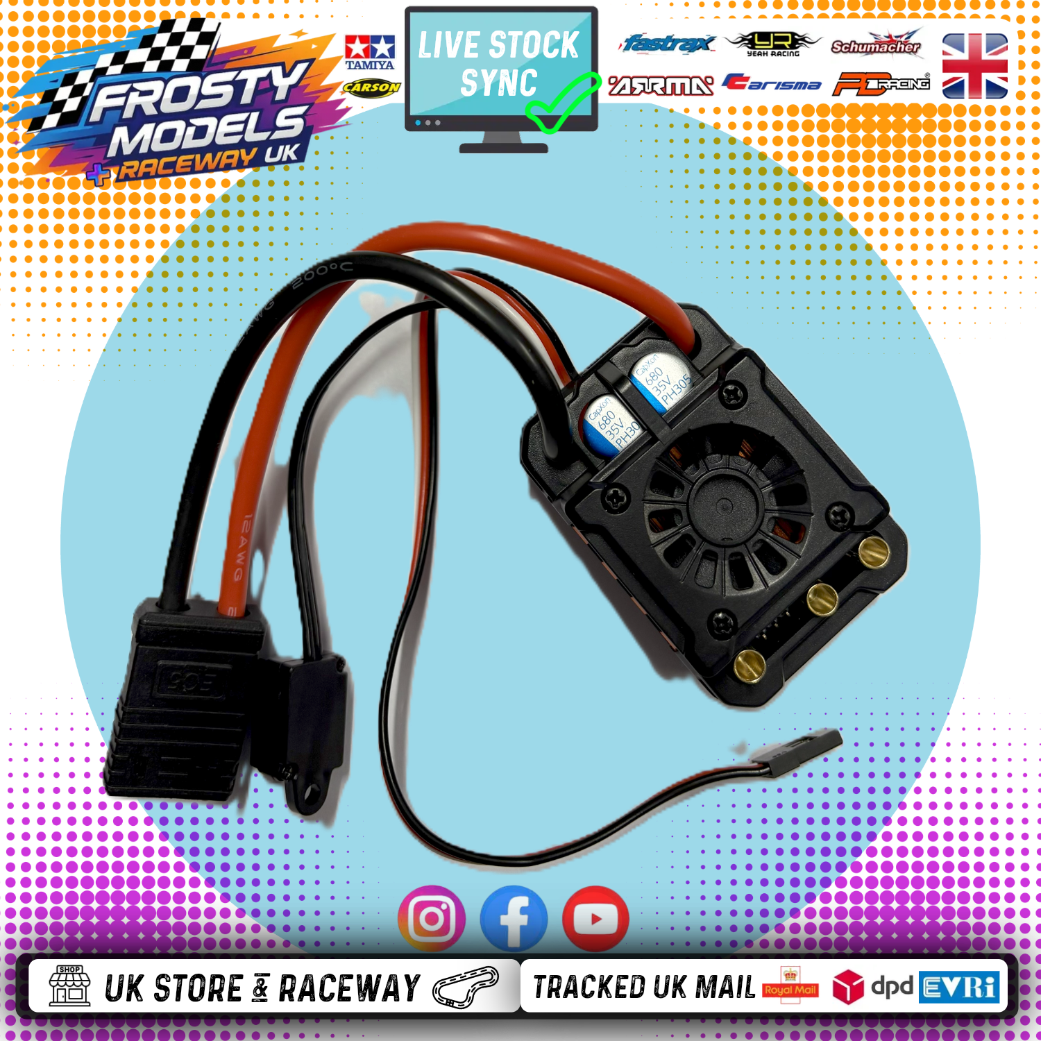 The integrated radiator design, combined with the patented copper thermal conduction sink on the internal power board of the ESC, facilitates the rapid conduction of internal heat to the radiator, and the fan is added to dissipate heat. These results an efficient heat dissipation system to ensure that the ESC is always in a good heat dissipation state.
