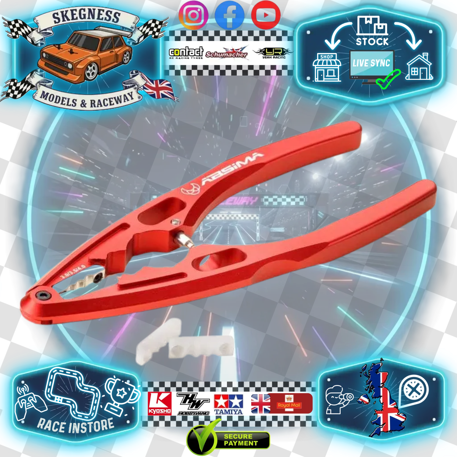 Absima - 1/10 - 1/8 RC CAR/TRUCK/BUGGY SHOCK SHAFT PLIERS & Multi Tool (RED) ALLOY - 3000074