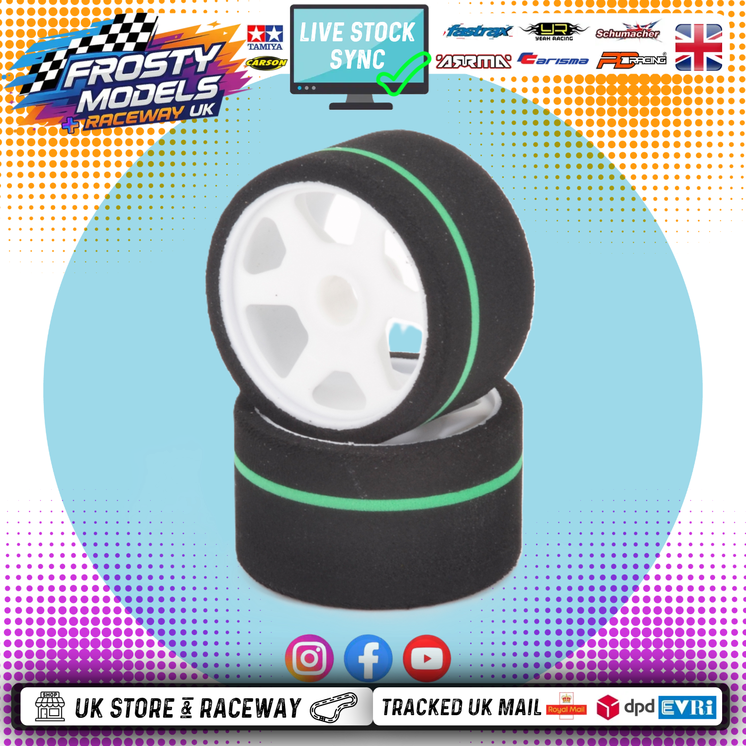 The control tyres are available in only one compound, 40 shore Front trued to 44mm and 37 shore rear trued to 46mm, selected to give the perfect balance for the majority of conditions.