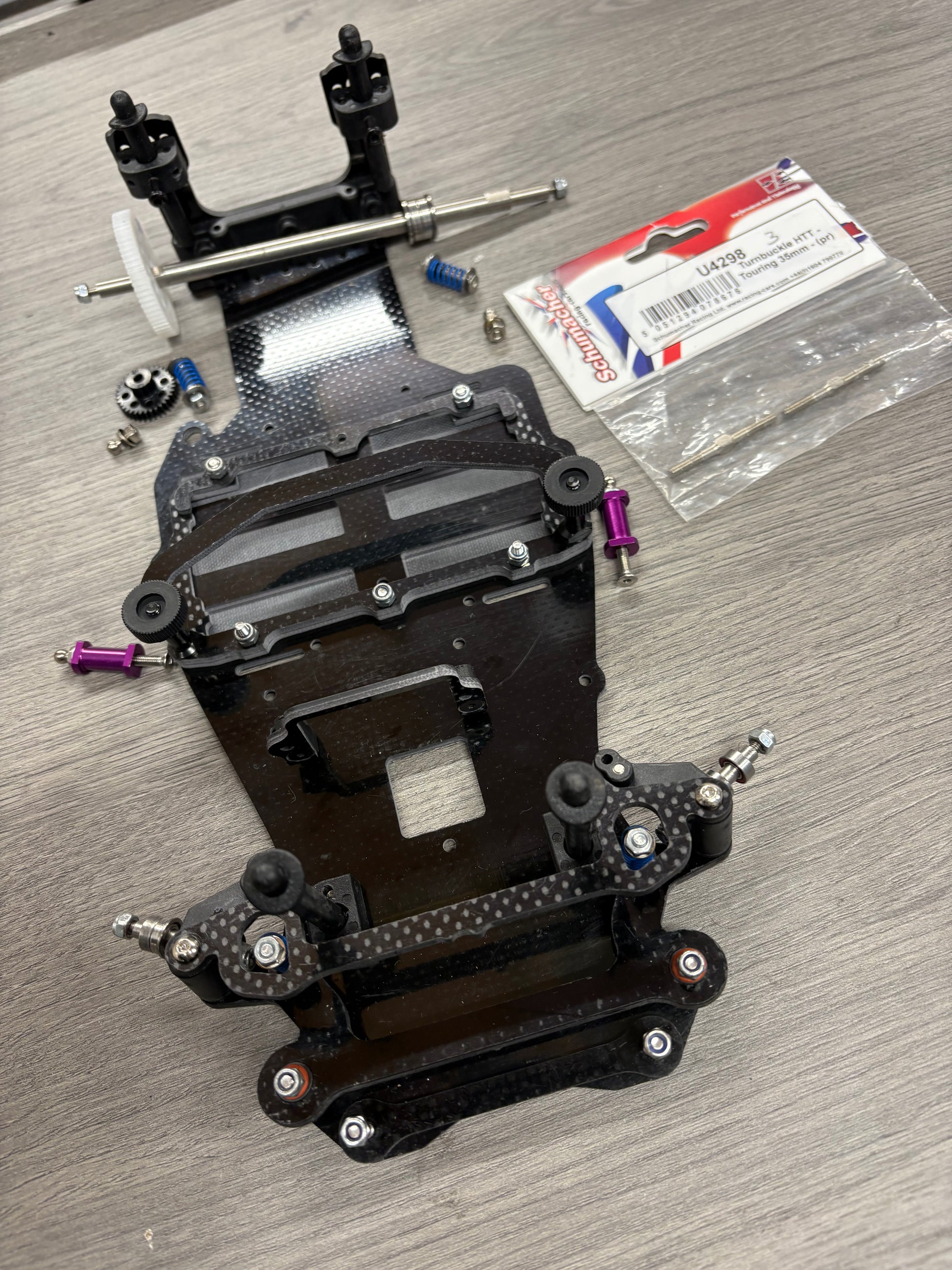 Built to be classed to race in the GT12 touring on 13.5T motor. But can be converted to others, such as the 25.5T brushless stock setup or even core 21 brushed. Chassis can take brushed or brushless motors.
