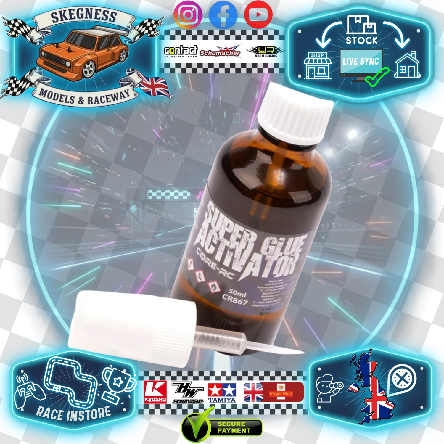 Core RC - Super Glue Activator 50ml - Glass Bottle +Atomiser (For Rubber & Foam Tires) CR867