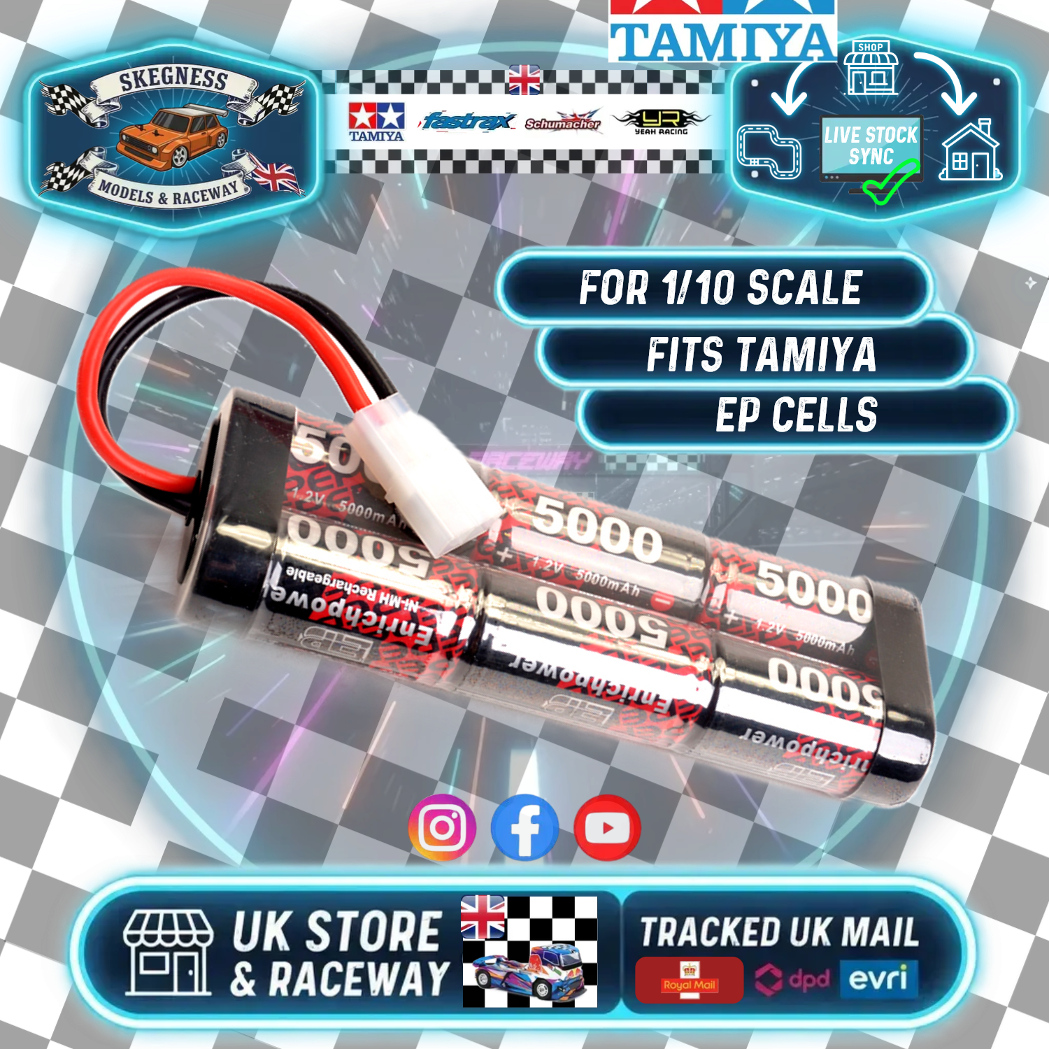 ENRICH POWER - 6 CELL RC BATTERY STICK PACK - 5000mAh - 7.2V NIMH W/TAMIYA PLUG - FITS TT01E + OTHERS