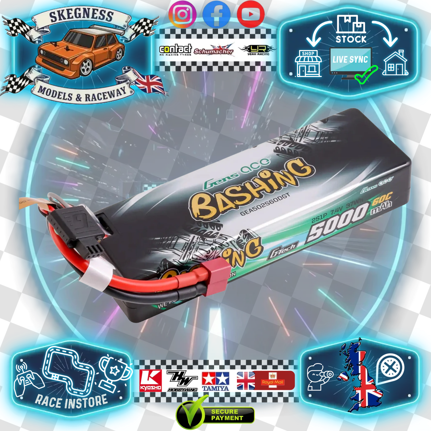 Gens Ace - LiPo Battery G-Tech Car Hard Case 2S 7.4V 5000mAh 60C with T-Type (deans) O-GTC2S5000-60T