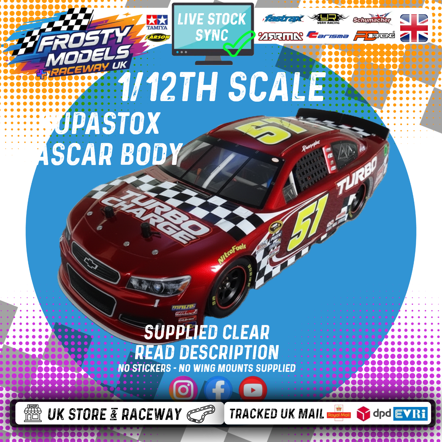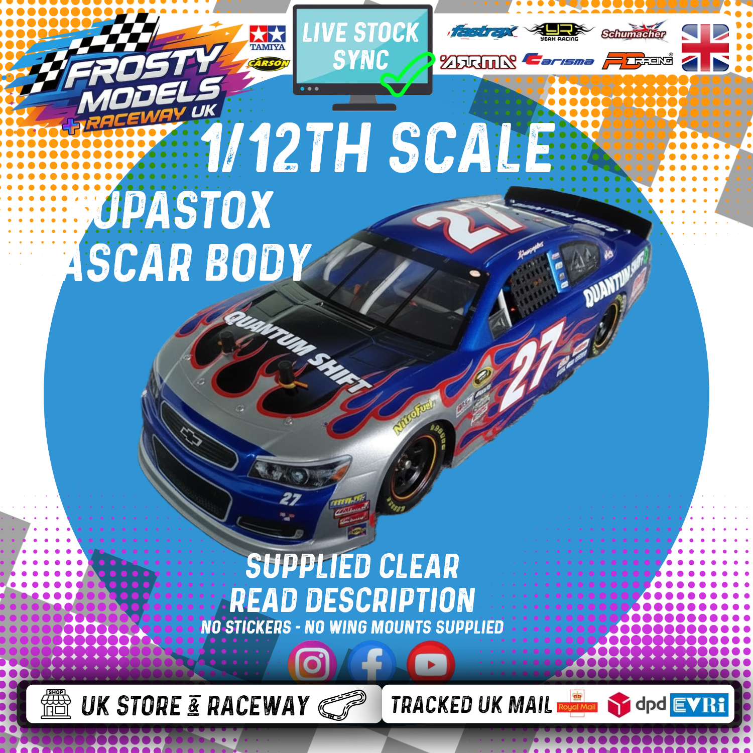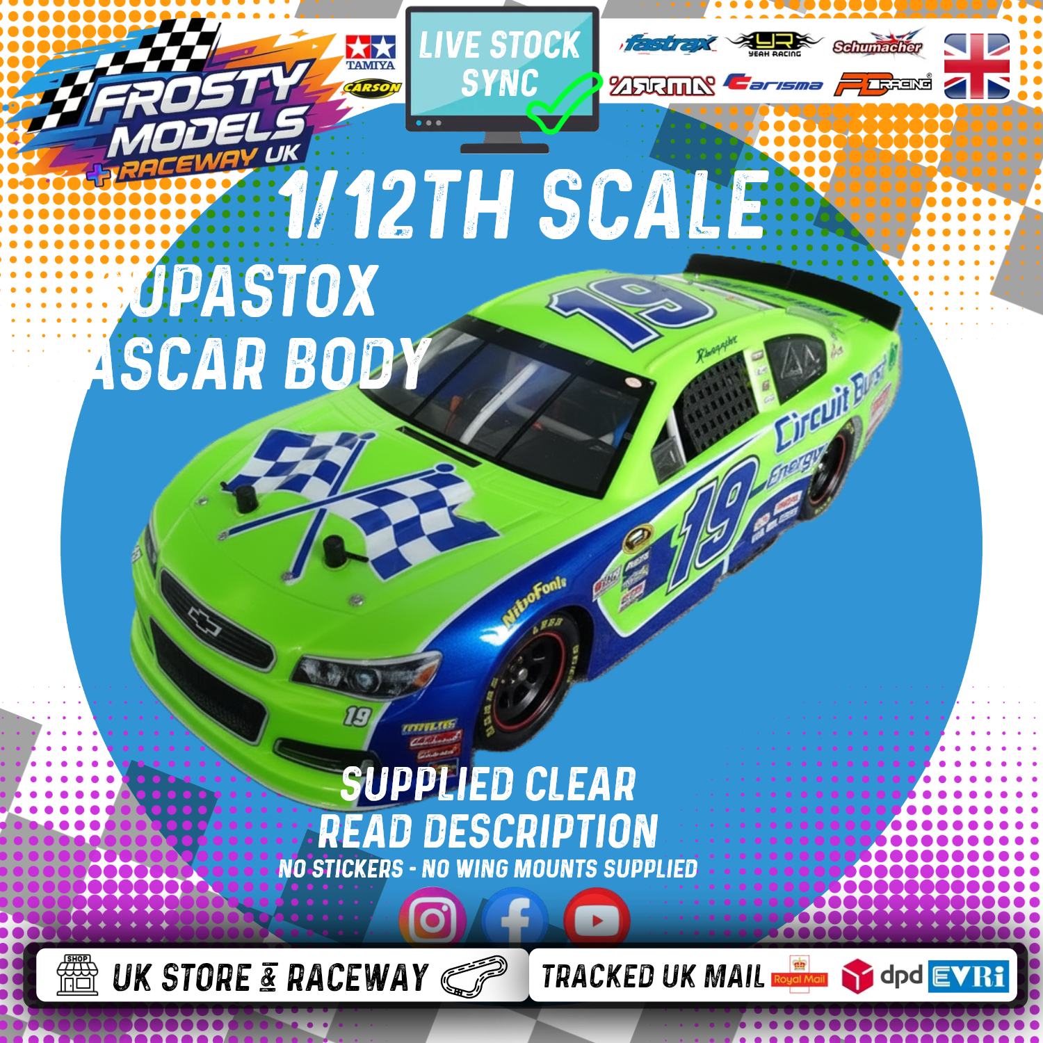 (PRE-ORDER) GT12 Supastox NASCAR Body - Generic Chevy - Clear Lexan - Fits 1/12 Car 205mm Wheelbase / 160mm Wide (For NEW Frosty Raceway Oval)