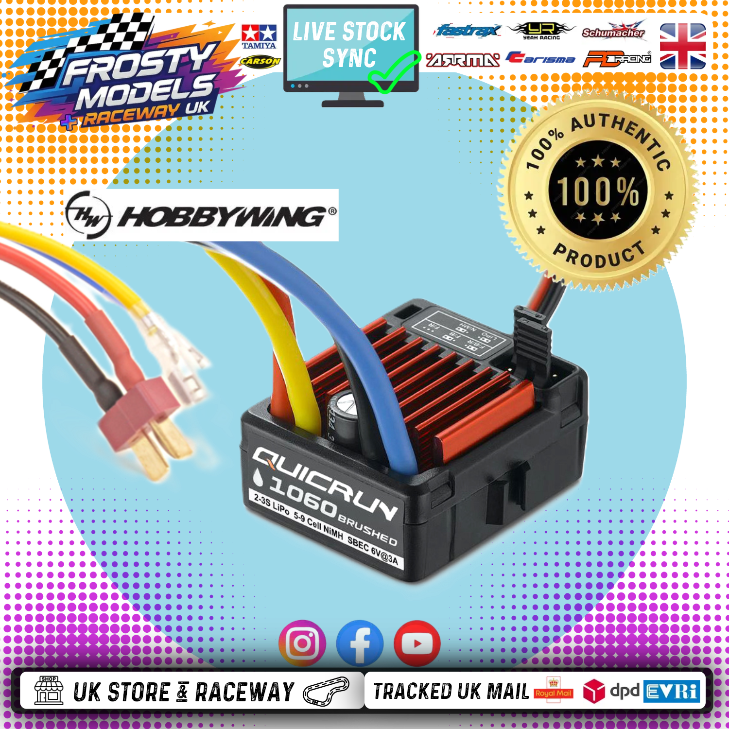 HOBBYWING - QUICRUN - WP1060 - 1/10 RC BRUSHED ESC - SBEC T PLUG (DEANS) (60AMP) HW30120060028 (TT01E EURO TRUCK STOCK SPEC)