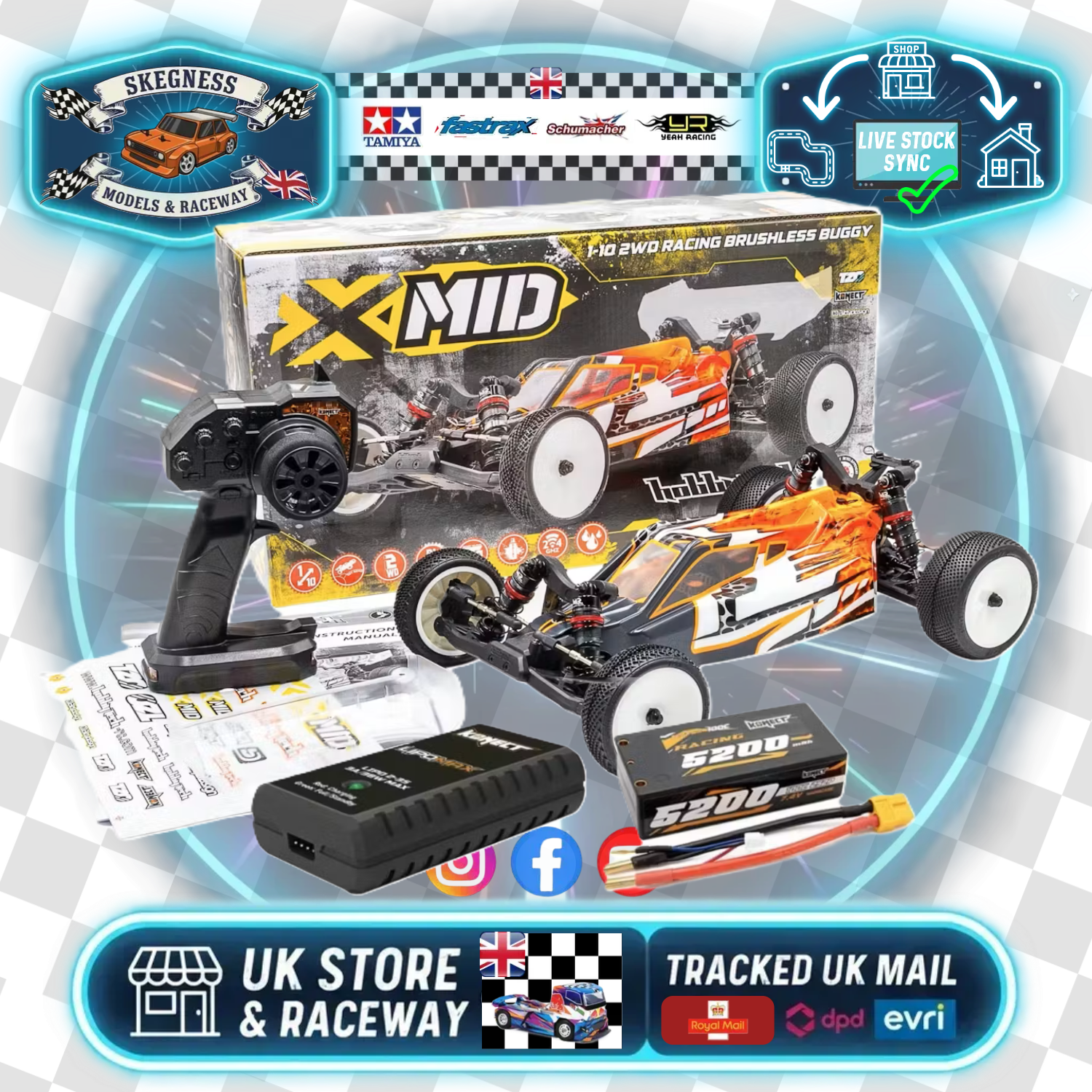 HOBBYTECH - XMID 2WD 1/10TH BRUSHLESS BUGGY RTR INC 5200mah LIPO BATTERY & CHARGER - HT-1.XMID.RTR-PACK - (Entry Level Competition Buggy)