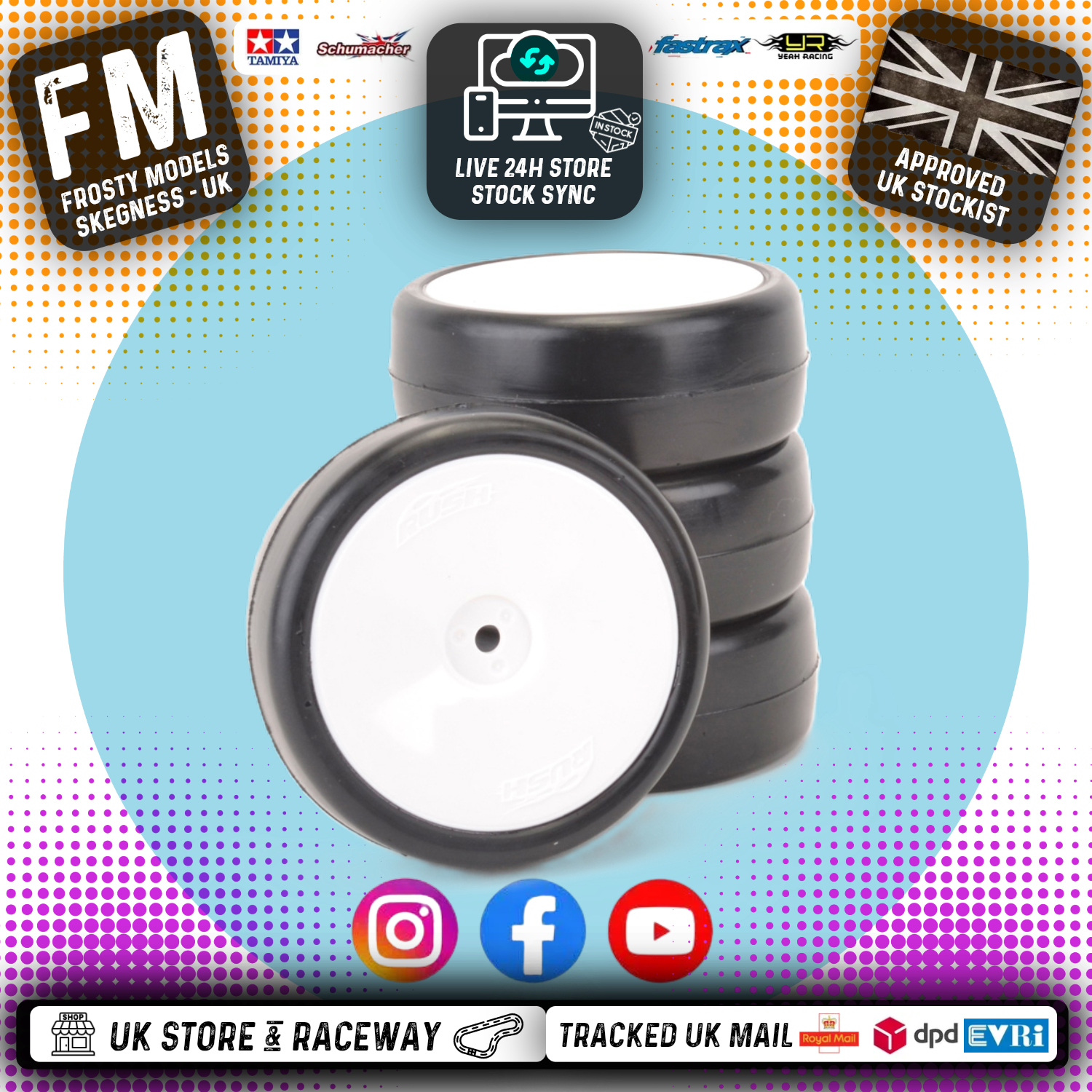 RUSH - 1/10 WHEELS & TIRES / TYRES Carpet PRE-GLUED - 28X - Dish (4pcs) - RU0362 (Recommend Louth & Frostys)