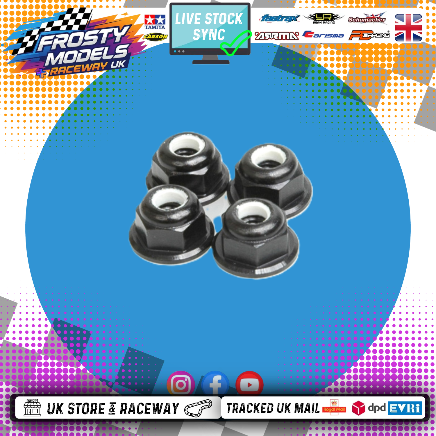 Schumacher - M4 1/10 WHEEL NUTS (7mm Socket) - BLACK FLANGED LOCKNUTS (4PC) U2812