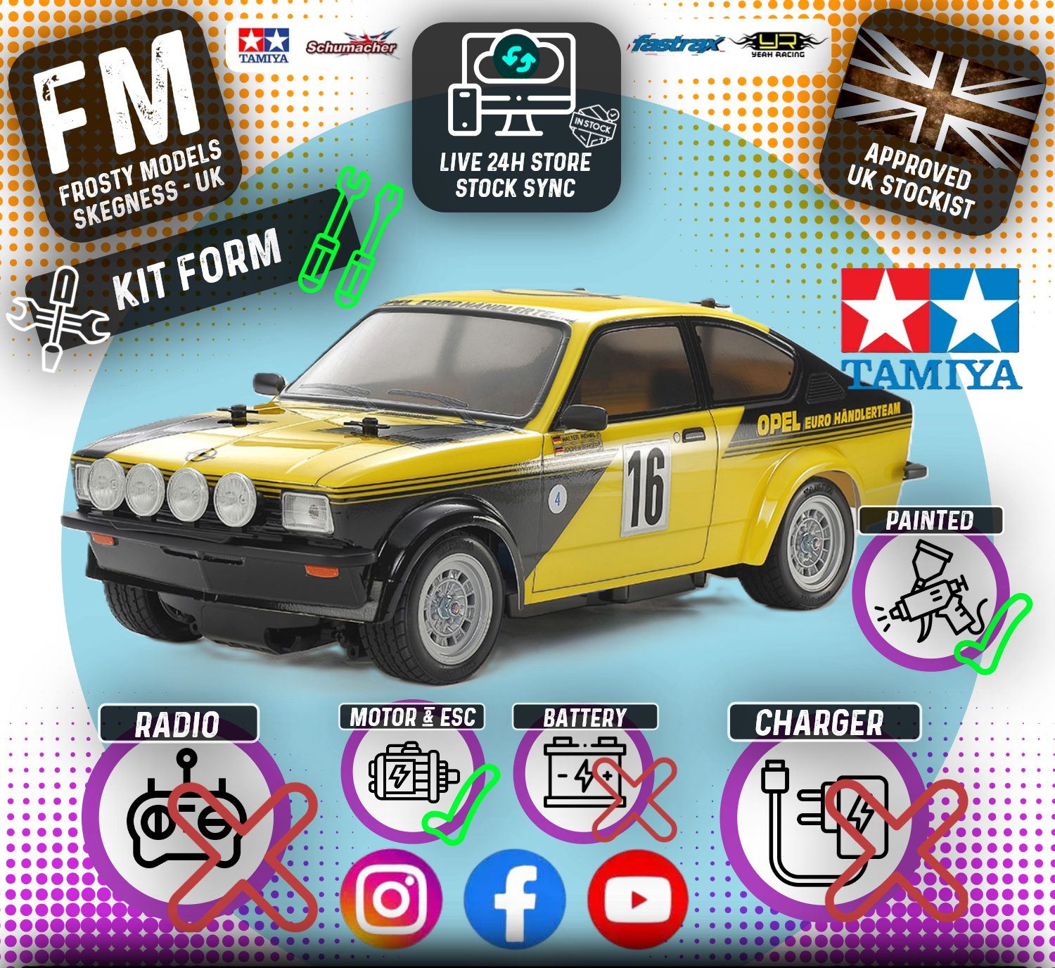 TAMIYA 47499 - PAINTED Opel Kadett GT/E (MB01) RC 2WD Car Kit - (Inc's ESC & Motor - Requires Radio Set, Servo, Battery & Charger) (M-chassis)