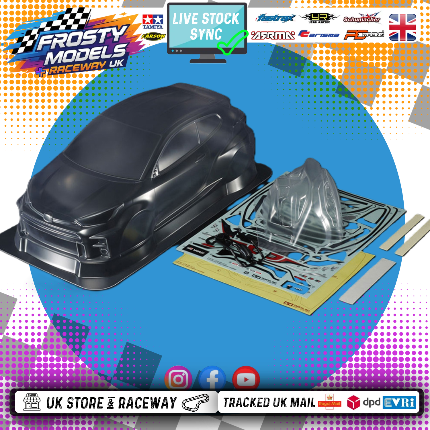 Tamiya 51656 - RC BODY GR YARIS (1/10 M-Chassis size 239mm Wheel Base) - Body parts, Stickers & Masking Included