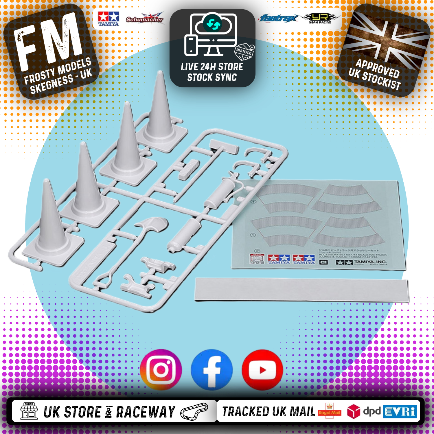Tamiya - 56558 1/14 Tractor Truck Accessories Set - Cones, Shovel, Fire Extinguisher & Stickers (Unpainted)