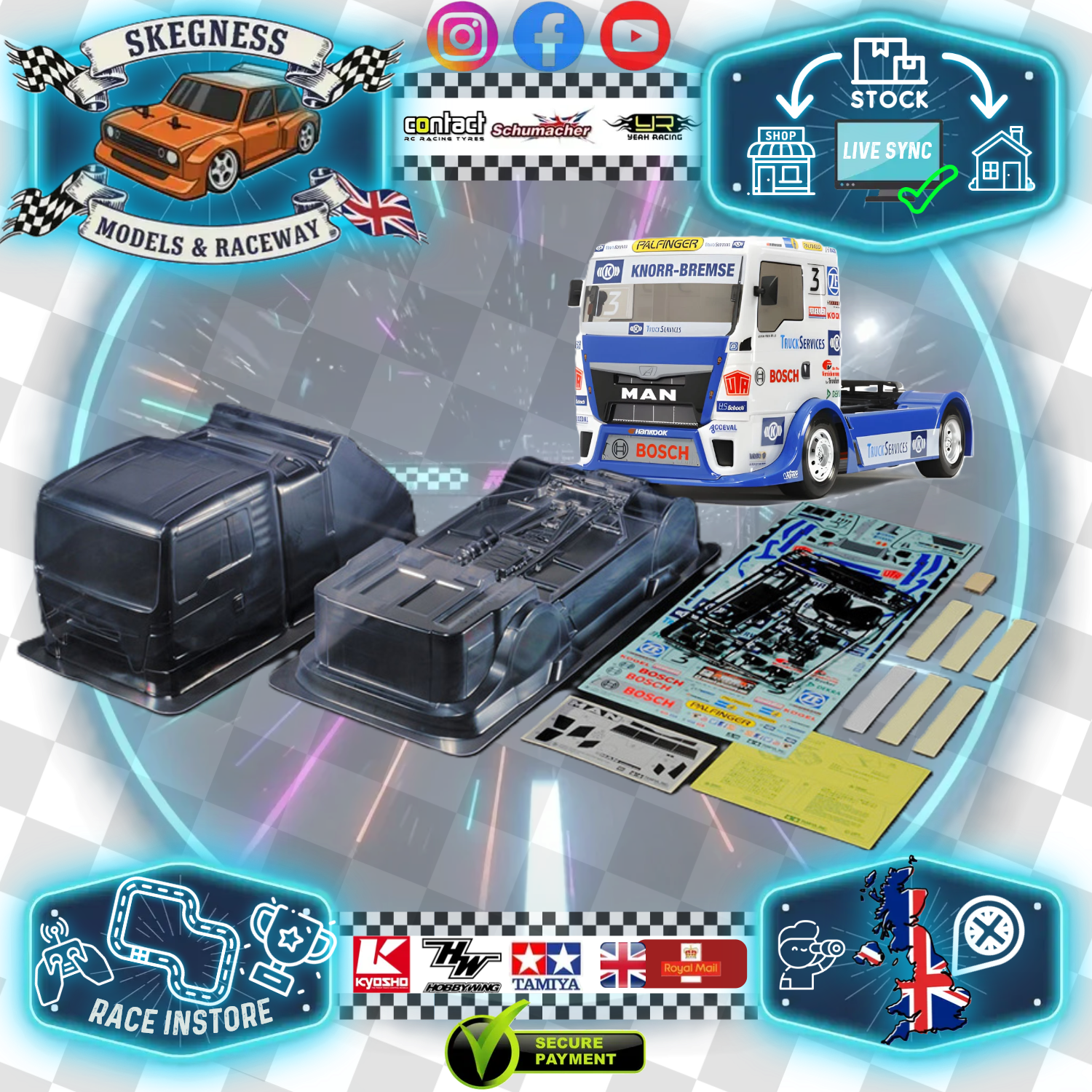 TAMIYA - 51606 MAN TEAM HAHN CLEAR Euro Truck BODY SHELL SET 1/14 - (w/ H PARTS & STICKERS, BUMPERS, MANUAL & FIXINGS)