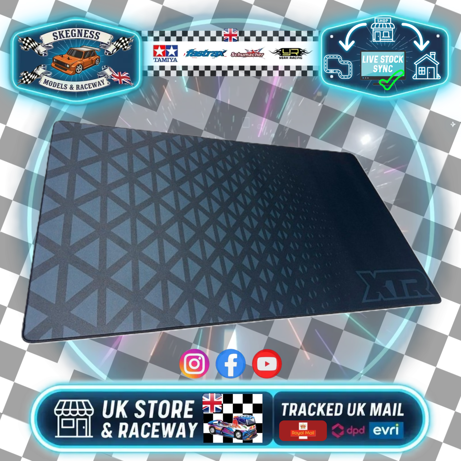 The new XTR Racing fabric pit mat is a generous 100cm x 60cm in size, making it ideal for your pit table or work bench and looks great finished with XTR's latest graphic.